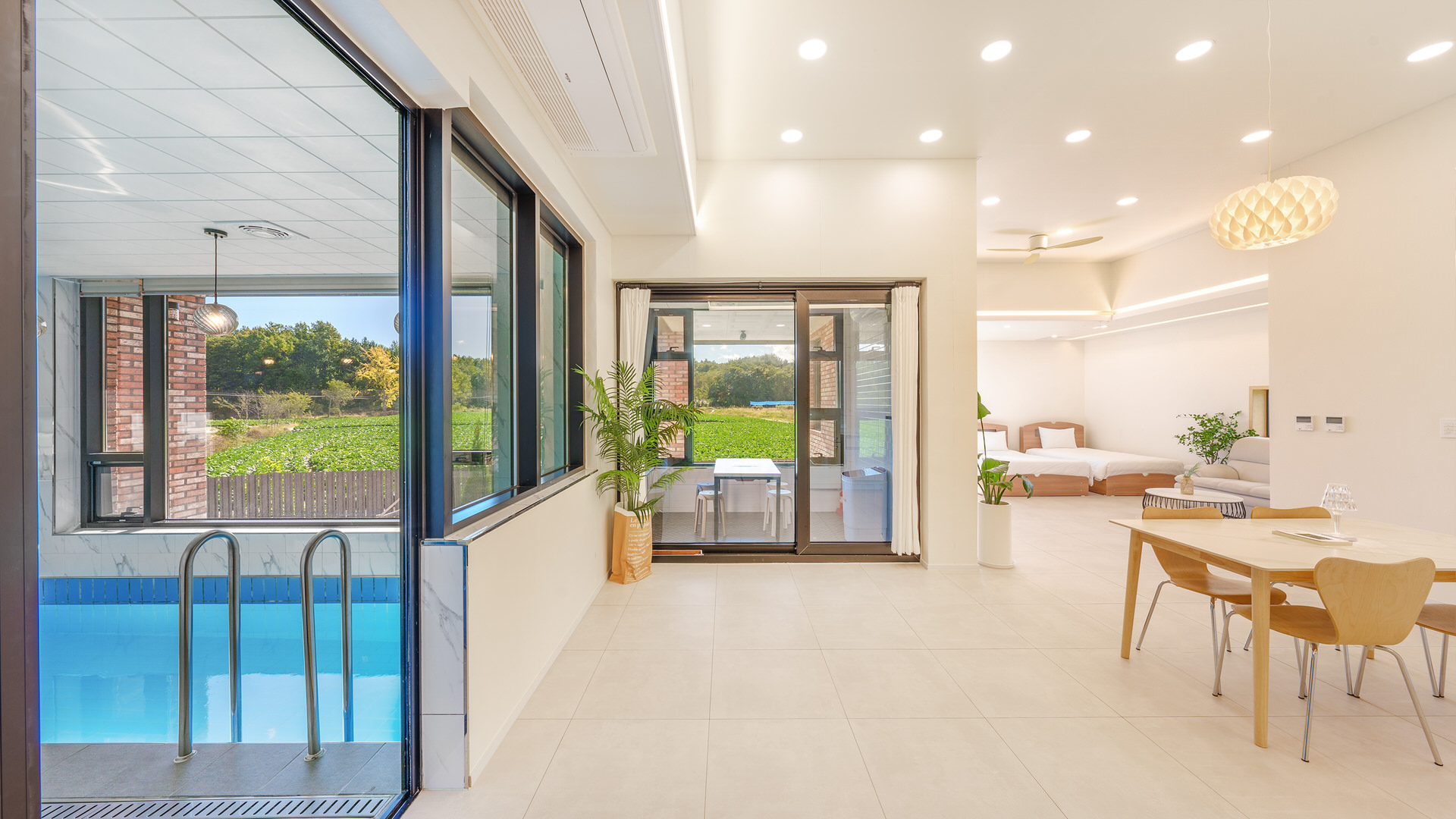 - 집기품목 : 풀빌라, 자쿠지, 커피머신, 욕실용품, 남녀공용, TV, OTT, 금연, 냉장고, 에어컨, 전기밥솥, 취사시설/도구, 단체, 가족실, 화재 감지기, 무선인터넷, 식탁, 드라이기, 전자레인지, 정수기, 일산화탄소 감지기, 산전망